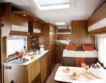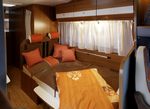 Оригинальная концепция дизайна интереьера автодома Carado А464 создаёт атмосферу домашнего уюта. Спальные места расположены здесь не только вдоль жилого отсека, но и над кабиной. Высота спального пространства составляет 70см.