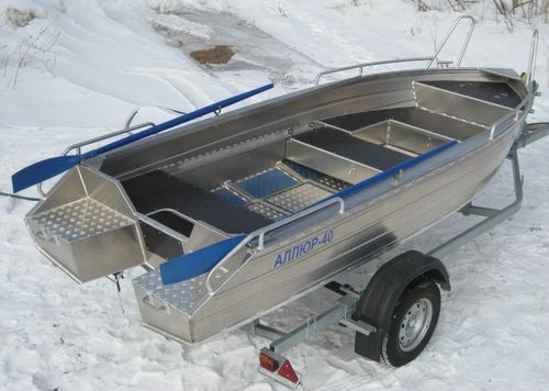 Моторная алюминиевая лодка Аллюр-40 имеет прочный корпус из материала 3-мм толщины, и обводы, допускающие ограниченную эксплуатацию при высоте волны до 0,5м. Поперечный набор из специального алюминиевого конструкционного профиля с толщиной 4мм.