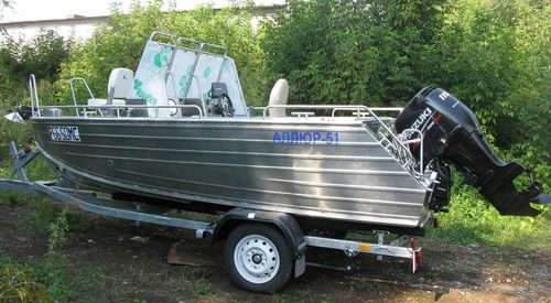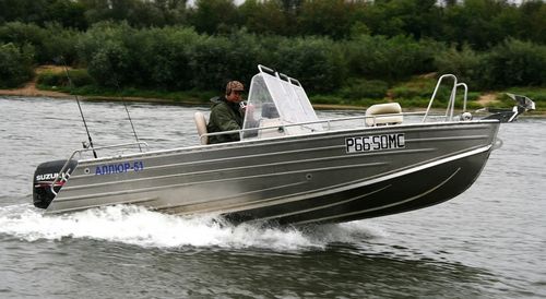 - В днище лодки вмонтирована гидролыжа, плоская пластина шириной на транце 626 мм и длиной в нос 3110 мм, улучшающая выход лодки в экономичный режим движения и уменьшающая осадку корпуса.