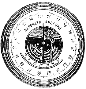 Дина (из физики) - сила, сообщающая массе в 1 г ускорение движения на 1 см в сек2. Нормальное давление равно 1013,25 мб, стандартное - 1000 мб (750 мм). На судах встречаются приборы, измеряющие давление как в одних, так и в других единицах, поэтому для перевода одних в другие следует помнить, что 1 мб приблизительно равен 0,75 мм рт.ст., а 1 мм рт cm равен 1,3 мб . Для облегчения перевода существуют специальные таблицы, приведенные, для облегчения судоводителями поиска в приложении к настоящему пособию. Прибор для измерения атмосферного давления носит название барометра. По принципу действия различают жидкостный, анероид, гипсотермометр, газовый барометры. Основным прибором для измерения давления на судах является барометр-анероид (рис . 133).