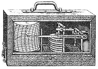 Шкала прибора проградуирована в миллиметрах ртутного столба, на ней встроен термометр. При выполнении наблюдений необходимо слегка постучать по стеклу, после чего отсчитать показания с точностью до 0,1 мм, которые необходимо исправить тремя поправками - шкалы, на температуру прибора и добавочной поправки, которые все выбираются из паспорта. Для наблюдения за изменениями давления в течение определенного промежутка времени и графической записи показаний служит барограф, который автоматически и непрерывно (в течение суток или недели - в зависимости от оборота барабана) ведет запись атмосферного давления. Общий вид барографа показан на рис 134.