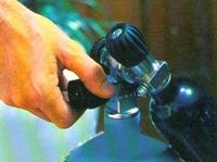 Когда убедитесь в полной заправке баллона, можно закрыть вентиль, отсоединить первую ступень регулятора и опробовать компенсатор плавучести. Сначала закройте вентиль, а затем снимите давление воздуха нажатием кнопки продувки в центре передней части второй ступени, после чего отсоедините регулятор от вентиля баллона.