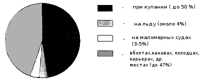 Многолетние данные свидетельствуют, что практически каждый второй из утонувших при купании находился в состоянии алкогольного опьянения, а при гибели в болотах, канавах, лужах, карьерах нетрезвое состояние является главной причиной трагедий. В последние годы ежегодно на водоемах тонет до 2 тысяч детей. Основными причинами детского травматизма на воде являются неумение детей плавать и оставление их возле воды без присмотра взрослых, в первую очередь, родителей. Особенно опасно купание в необорудованных для этого местах. Поэтому судоводителям маломерных судов во время остановки у берега необходимо проявлять предельную осторожность при выборе места для купания.