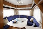 Суперкомпактная двухместная модель C 100 оборудована полукруглыми диванами, которые раскладываются в кровать, расположенную поперек салона. Приятно удивляют компактные габариты каравана: длина 564 см, ширина 232 см, и высота 260 см.