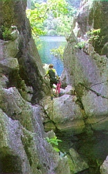 Вверху. Путь через скалы к озеру Наянган.