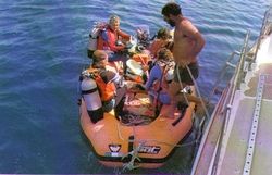 Судно может останавливаться достаточно близко к дайв-сайту, чтобы можно было входить в воду так же, как с пирса, однако, скорее всего, вас будут доставлять к месту погружения на надувной лодке или небольшой шлюпке.