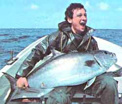 Вначале дайте ему немного побегать на свободе, а потом начинайте проводить боковую буксировку, удерживая все время леску натянутой, чтобы не потерять контакта с рыбой. Продолжая удерживать темп движения судна, при таком способе вываживания нужно вконец утомить тунца и подтащить его поближе к судну, после чего вытащить баграми.