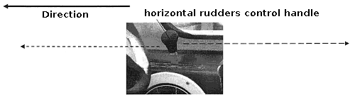 The trim control handle (with horizontal rudders) is located along the right board of the driver's working place and has 7 fixed positions. Intermediate position – the handle in the centre. Positive trim difference position – the handle backwards, the rudders up. The negative trim difference position – the handle forwards, the rudders down. The position of the horizontal rudders is chosen by the driver according to the present weight balance which depends on arrangement of cargo and passengers. One should resort to the negative trim difference when it is necessary to take a turn of a small radius on water or on land.