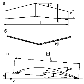Основными элементами крыла являются его размах 1, хорда b, угол стреловидности χ и угол килеватости β. В качестве дополнительных параметров при расчетах и проектировании используются площадь крыла в плане S = lb и относительное удлинение λ = l2/S. Для прямоугольного крыла с постоянной вдоль размаха хордой λ = 1/b.