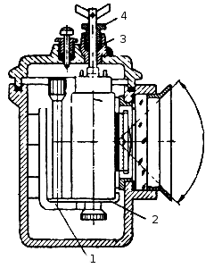 Разрез бокса УПК: 1 — кронштейн; 2 — промежуточная пластина; 3 — бабышка; 4 — нажимная гайка