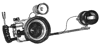 Фотобокс для зеркальный фотоаппаратов КПФ с фотовспышкой, имеющей автономное питание от гальванических батарей (оборудован иллюминатором Мадиевского) и с двумя импульсными осветителями, работающими от батареи "Молния"