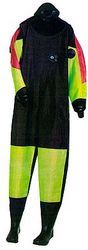 Этот «сухой» костюм изготовлен из трехслойного материала: вулканизат между двумя слоями износостойкого синтетического материала. Как и в случае с прессованным неопреном, такие костюмы сами по себе не обладают теплоизоляционными свойствами, поэтому необходимы теплые поддевки