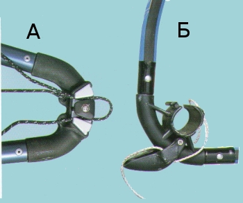 Задняя (А) и передняя (Б) оковки гика обеспечивают крепкое соединение с мачтой и парусом.