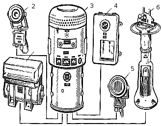 блок питания; 2, 5, 6 - репитеры; 3 - основной прибор;4 - курсограф. гирокомпаса
