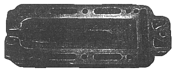 Глушитель (рис. 93) представляет собой крышку, закрывающую выхлопные окна в блоке цилиндров и образующую вместе с ним квадратный канал перепуска газов в дейдвуд. Полость дейдвуда имеет особую форму, отличающуюся от аналогичной на лодочных моторах, не имеющих настроенного выхлопа. Заметим, что все элементы настроенной выпускной системы подбираются экспериментальным путем индивидуально для каждой модели двигателя, поэтому применять ее на других моделях нельзя.