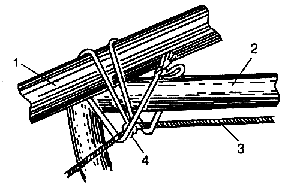 брус; 2 - шпангоут 4; 3 - тросик; 4 - схватывающий узел