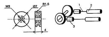 На концах штевней сверлят отверстия диаметром 3 мм. По обеим сторонам штевней на болте М3 устанавливают шайбы с канавками под тросики, причем одна из шайб устанавливается с резьбой. На шайбах с помощью медных трубок с внутренним диаметром 2 мм закрепляют эпоксидной смолой концы стального миллиметрового тросика.