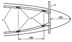 привального бруса; 2 - направление к центру лодки