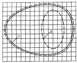 Рис.62. Вырез отверстия для гребца (1) и плоской части юбки (2)