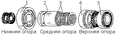 подшипник № 305; 2 — втулка; 3 — валиковые подшипники; 4 — подшипник № 205; 5 —