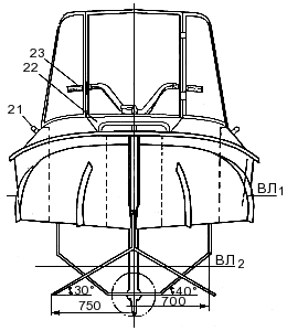19 - стекло ветровое съемное; 20 - скоба-упор, ограничивающая подъем рулевой