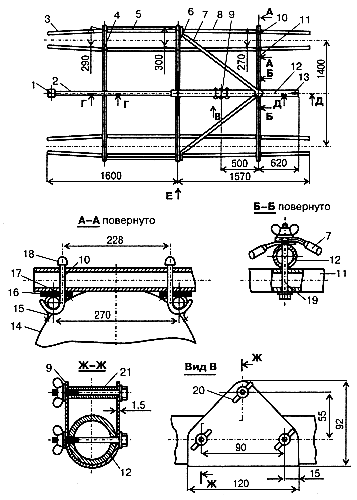 Мост катамарана представляет собой легкоразборную конструкцию, соединяющую воедино все части судна (рис. 69). Они объединены в плоскостную систему: прочную, но имеющую возможность некоторой деформации за счет подвижности соединительных узлов и упругости балок-труб.