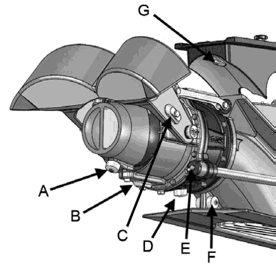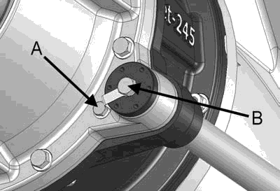 Не выкручивая до конца винт, которым крепится анод (рис. 10, точка B), следует зафиксировать пробку на месте с помощью герметика (например, Sikaflex 221). Только после этого следует крепить другой конец пламегасителя к статору. Затем следует затянуть крепежный винт анода. Рисунок 10. Анод статора |