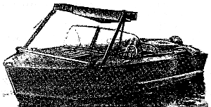 Приводим одну из удачных конструкций однокрылых устройств для мотолодки "Прогресс" (разработка В. Крикунова). Данная система отличается небольшим весом и возможностью подъема на палубу с поворотом относительно оси подвески и размещения у лобового стекла (рис. 83).
