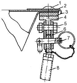 гайка; 6 - винт регулировки угла атаки; 7 - кронштейн; 8 - штурвал управления