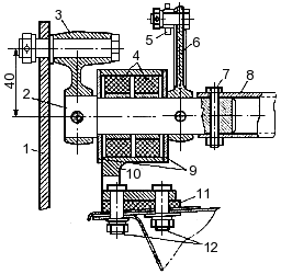 муфта; 9 - шайба; 10 - кронштейн; 11 - резиновая прокладка; 12 - болты