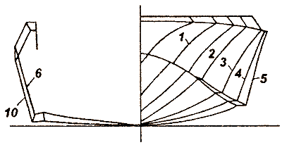 Рис. 11. Теоретический корпус мотолодки "Крым"