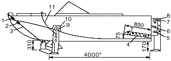 замок фиксации натяжения тросика; 2 - талреп; 3 - натяжной тросик; 4 - кормовой