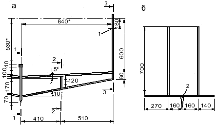 Рис. 46. Конструкция носового (а) и кормового (б) крыльев (правое