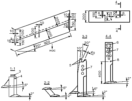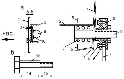 носовой переборке, 6 шт.; 4 - накладка, алюминий; 5 - срезаемые болты М10,