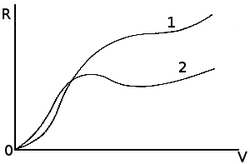 Рис. 1. Сопротивление R глиссера и судна на подводных крыльях