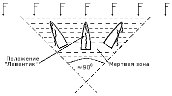 Это когда нос яхты точно против ветра; мертвая зона: здесь паруса работать не могут, они полощут, яхта движется по инерции или находится в дрейфе.