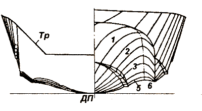 спонсонам, имеющимся в носовой половине длины корпуса (рис.
