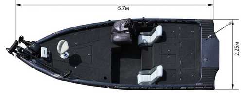 Конфигурация: низкий борт, сплошная палуба с рундуками под ней, в рундуки помещаются длинные удилища, просторная площадка спереди и сзади, пару рыболовных кресел, место для аэратора, один или два троллинговых электромотора.