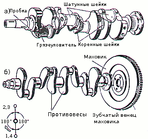 а-восьмицилиндрового V-образного двигателя; б-четырёхцилиндрового
