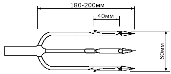 Чем глубже в рыбу проникает наконечник, тем больше у него шансов ее удержать от схода. Кроме этого, если мы хотим подстреленную рыбу снять с наконечника, он должен пройти и выйти из ее тела так, чтобы можно было тем или иным образом заблокировать откидывающиеся лепестки-зацепы. То есть чем длиннее трезубец, тем вероятнее нам этого достичь. Конечно, все имеет разумные пределы. Исходя из опыта охоты в реках и озерах России, мы остановились на следующих, как нам кажется, оптимальных размерах трезубцев. Лепестки, для максимально надежного удержания рыбы, должны быть установлены так, как показано на рис. 20.