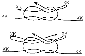Казачий и калмыцкий узлы — затягивающиеся петли. Вяжутся одинаково. Калмыцкий узел, за счет сложенного вдвое ХК при последней пробивке, становится быстро развязывающимся. Подробнее...