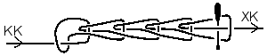Этот узел для утолщения на конце троса, чтобы предотвратить его полное выхлестывание из блока. После вязки узла, его следует слегка растянуть за КК и ХК.