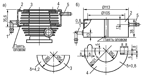 Ø 8×1, латунь; 2 — рубашка, жесть, латунь; 3 — клиновое полукольцо, дюраль; 4 —