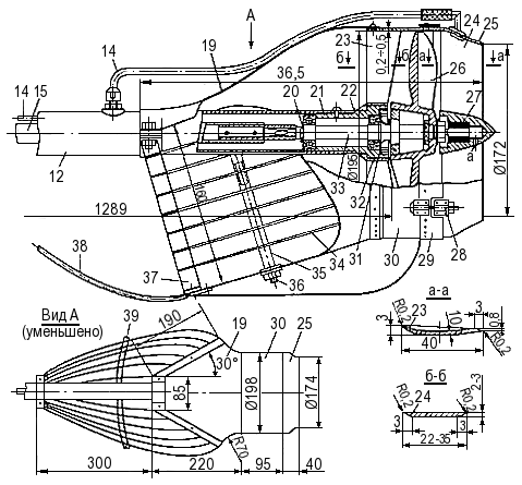 Рис. 85. Движитель мотор-весла. (Нумерация позиций является