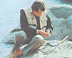 Рис. Рыболов выбирает мушку, соответствующую условиям рыбалки