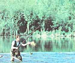 Рис. В медленно-текущих, не очень глубоких водах нужно, не скупясь, прикормливать рыбу, бросая на место ловли пригоршни личинок.