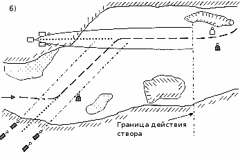 Рис. 150. б) Ограждение судового хода щелевым и кромочным створами.