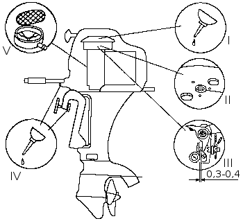 Требуется осмотреть и при необходимости очистить электроды и отрегулировать зазор в искровом промежутке запальных свечей, осмотреть весь наружный крепеж мотора и при необходимости подтянуть его.