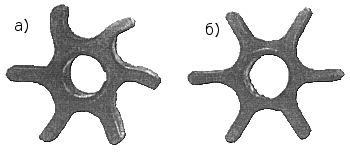 Рис. 92. Крыльчатка насоса с остаточной деформацией лопастей (а) и пригодная к дальнейшему использованию (б)
