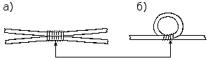 Рис. 17.3. а) бензель — перевязка двух тросов; б) кренгельс — петля на тросе.